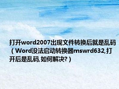 相信目前很多小伙伴对于Word没法启动转换器mswrd632,打开后是乱码,如何解决?都比较感兴趣,那么小编今天在网上也是收集了一些与Word没法启动转换器mswrd632,打开后是乱码,如何解决?相关的信息来分享给大家,希望能够帮助到大家哦。
