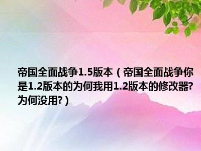 相信目前很多小伙伴对于帝国全面战争你是1.2版本的为何我用1.2版本的修改器?为何没用?都比较感兴趣,那么小编今天在网上也是收集了一些与帝国全面战争你是1.2版本的为何我用1.2版本的修改器?为何没用?相关的信息来分享给大家,希望能够帮助到大家哦。