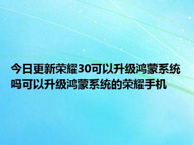 目前上述的内容应该能够为大家解答出大家对于荣耀30可以升级鸿蒙系统吗可以升级鸿蒙系统的荣耀手机的疑惑了,所以如果大家还想要了解更多的知识内容,也可以关注本站其他文章进行了解哦。