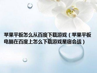 导读相信目前很多小伙伴对于苹果平板电脑在百度上怎么下载游戏星宿会战都比较感兴趣,那么小编今天在网上也是收集了一些与苹果平板电脑在百度...