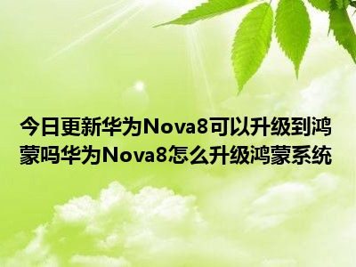 目前上述的内容应该能够为大家解答出大家对于华为Nova8可以升级到鸿蒙吗,华为Nova8怎么升级鸿蒙系统的疑惑了,所以如果大家还想要了解更多的知识内容,也可以关注本站其他文章进行了解哦。