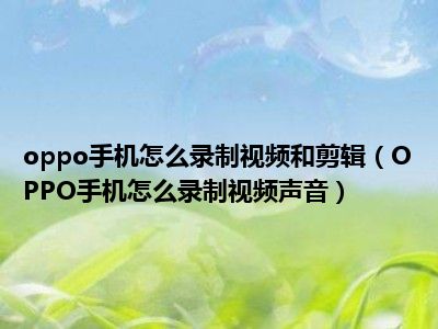 导读 1、OPPO手机怎么录制视频声音2、以OPPO手机为例。录制视频声音,只需要在应用权限中开启录制画面的麦克风权限。3、OPPO在2008年推出了第一