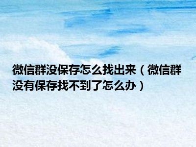 导读 1、微信群没有保存找不到了怎么办2、微信没有保存,但是可以在消息列表中找到。如果在消息列表中不存在,可以找同组的朋友在群里发消息,这