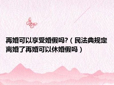 新婚姻法离婚后再婚有婚假。相关法律法规规定,再婚者与初婚者的法律地位相同,用人单位对再婚职工应当参照国家有关规定,同样享有法定假期。所以,离婚后再婚也是有婚假的。