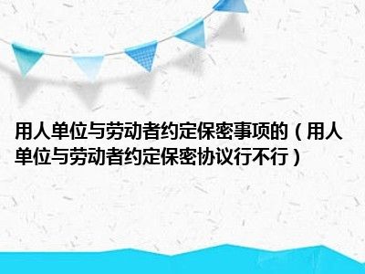 目前大家应该是对用人单位与劳动者约定保密协议行不行比较感兴趣的,所以今天CC就来为大家整理了一些关于用人单位与劳动者约定保密协议行不行方面的相关知识来分享给大家,希望大家会喜欢哦。