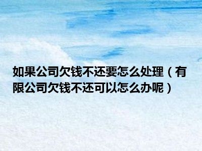 目前大家应该是对有限公司欠钱不还可以怎么办呢比较感兴趣的,所以今天CC就来为大家整理了一些关于有限公司欠钱不还可以怎么办呢方面的相关知识来分享给大家,希望大家会喜欢哦。