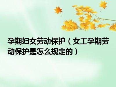 目前大家应该是对女工孕期劳动保护是怎么规定的比较感兴趣的,所以今天CC就来为大家整理了一些关于女工孕期劳动保护是怎么规定的方面的相关知识来分享给大家,希望大家会喜欢哦。