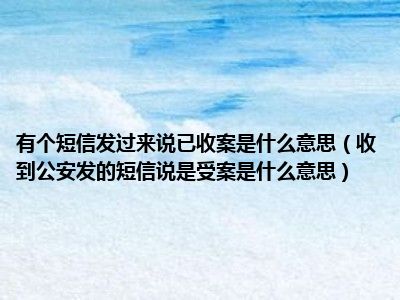 目前大家应该是对收到公安发的短信说是受案是什么意思比较感兴趣的,所以今天CC就来为大家整理了一些关于收到公安发的短信说是受案是什么意思方面的相关知识来分享给大家,希望大家会喜欢哦。