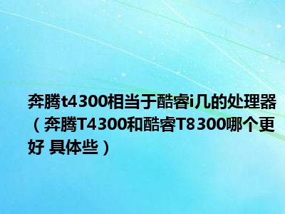 导读 相信目前很多小伙伴对于奔腾T4300和酷睿T8300哪个更好 具体些都比较感兴趣,那么小编今天在网上也是收集了一些与奔腾T4300和酷睿T8300哪...