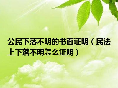 目前大家应该是对民法上下落不明怎么证明比较感兴趣的,所以今天CC就来为大家整理了一些关于民法上下落不明怎么证明方面的相关知识来分享给大家,希望大家会喜欢哦。