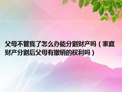目前大家应该是对家庭财产分割后父母有撤销的权利吗比较感兴趣的,所以今天CC就来为大家整理了一些关于家庭财产分割后父母有撤销的权利吗方面的相关知识来分享给大家,希望大家会喜欢哦。