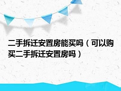 1可以购买二手拆迁安置房,但是购买风险较大。