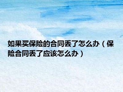 目前大家应该是对保险合同丢了应该怎么办比较感兴趣的,所以今天CC就来为大家整理了一些关于保险合同丢了应该怎么办方面的相关知识来分享给大家,希望大家会喜欢哦。