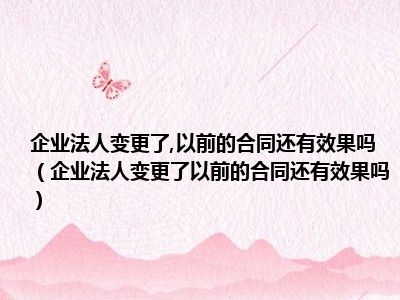 导读目前大家应该是对企业法人变更了以前的合同还有效果吗比较感兴趣的,所以今天CC就来为大家整理了一些关于企业法人变更了以前的合同还有效果...