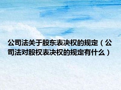 目前大家应该是对公司法对股权表决权的规定有什么比较感兴趣的,所以今天CC就来为大家整理了一些关于公司法对股权表决权的规定有什么方面的相关知识来分享给大家,希望大家会喜欢哦。