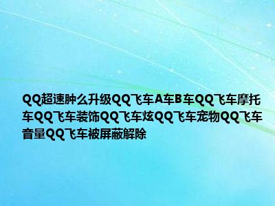 导读 相信目前很多小伙伴对于QQ飞车肿么升级?QQ飞车A车B车QQ飞车 摩托车QQ飞车装饰QQ飞车炫光QQ飞车宠物QQ飞车点卷QQ飞车被封解除都比较感兴趣...