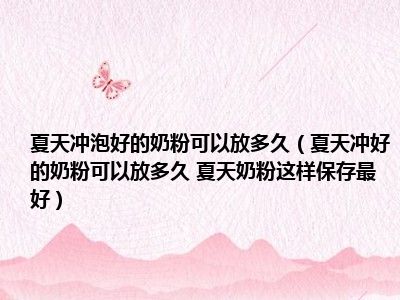 目前大家应该是对夏天冲好的奶粉可以放多久 夏天奶粉这样保存最好比较感兴趣的,所以今天小编CC就来为大家整理了一些关于夏天冲好的奶粉可以放多久 夏天奶粉这样保存最好方面的相关知识来分享给大家,希望大家会喜欢哦。