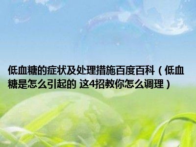 目前大家应该是对低血糖是怎么引起的 这4招教你怎么调理比较感兴趣的,所以今天小编CC就来为大家整理了一些关于低血糖是怎么引起的 这4招教你怎么调理方面的相关知识来分享给大家,希望大家会喜欢哦。