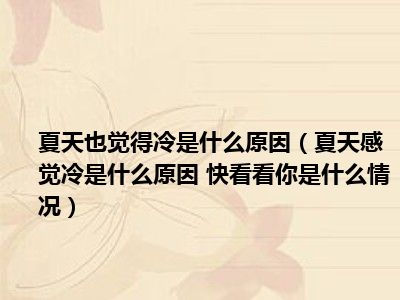 目前大家应该是对夏天感觉冷是什么原因 快看看你是什么情况比较感兴趣的,所以今天小编CC就来为大家整理了一些关于夏天感觉冷是什么原因 快看看你是什么情况方面的相关知识来分享给大家,希望大家会喜欢哦。