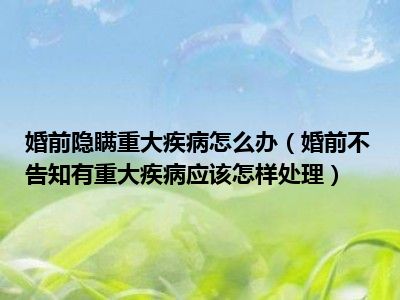 目前大家应该是对婚前不告知有重大疾病应该怎样处理比较感兴趣的,所以今天CC就来为大家整理了一些关于婚前不告知有重大疾病应该怎样处理方面的相关知识来分享给大家,希望大家会喜欢哦。