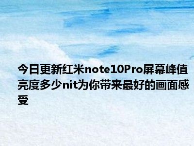 目前上述的内容应该能够为大家解答出大家对于红米note10Pro屏幕峰值亮度多少nit,为你带来最好的画面感受的疑惑了,所以如果大家还想要了解更多的知识内容,也可以关注本站其他文章进行了解哦。
