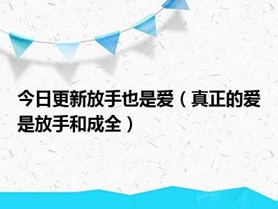 目前上述的内容应该能够为大家解答出大家对于放手也是爱(真正的爱是放手和成全)的疑惑了,所以如果大家还想要了解更多的知识内容,也可以关注本站其他文章进行了解哦。