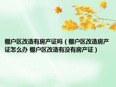 因为我是房地产公司的,已经搞过一个棚户区改造项目,我可以肯定的告诉你,棚户区改造有房产证。但涉及很多的问题:短期内不能办理,我的项目还有一个月就5年了。但现在也不能办理,原因多方面,政府主要是考虑不能确权这么多的房子,冲击房地产市场。缴纳税赋不确定。因为负责棚户区改造的房地产是很吃亏的,房地产先投入资金改造完棚户区,正好资金链不健全的时候,是不可能负责老百姓这部分的税款的。因为房地产没有销售业绩啊,没有销售出一套房,但棚户区改造老百姓是要缴纳契税的啊,怎么定这个标准呢?比如定按照10000元没平米缴纳契税,老百姓缴纳了,但房地产也得跟着缴纳很多的税款啊!房地产既没得益,还得赔上税款,傻瓜才会掏这个钱呢!所以税款没那么容易定下来。改造后因此而产生了许多的二套房三套房甚至多套房,政府怎么收这部分房子的税呢?肯定要定高税价,因为这部分也属于时代产物,是暴利啊!所以政府也很难定这部分的税赋。综合在一起,棚户区改造没那么容易确权的。也不能那么快确权的。