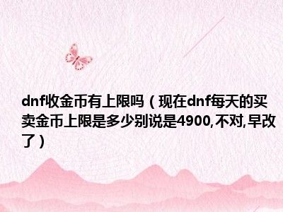 导读相信目前很多小伙伴对于现在dnf每天的买卖金币上限是多少。别说是4900,不对,早改了都比较感兴趣,那么小编今天在网上也是收集了一些与现在...