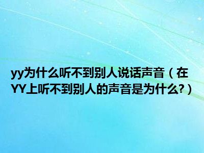相信目前很多小伙伴对于在YY上听不到别人的声音是为什么?都比较感兴趣,那么小编今天在网上也是收集了一些与在YY上听不到别人的声音是为什么?相关的信息来分享给大家,希望能够帮助到大家哦。