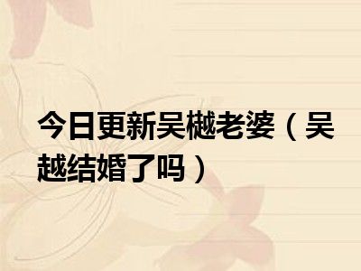 目前上述的内容应该能够为大家解答出大家对于吴樾老婆(吴越结婚了吗)的疑惑了,所以如果大家还想要了解更多的知识内容,也可以关注本站其他文章进行了解哦。