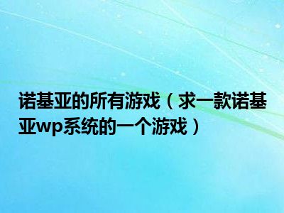 相信目前很多小伙伴对于求一款诺基亚wp系统的一个游戏都比较感兴趣,那么小编今天在网上也是收集了一些与求一款诺基亚wp系统的一个游戏相关的信息来分享给大家,希望能够帮助到大家哦。