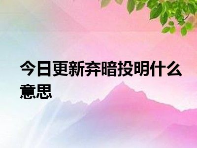 目前上述的内容应该能够为大家解答出大家对于弃暗投明什么意思的疑惑了,所以如果大家还想要了解更多的知识内容,也可以关注本站其他文章进行了解哦。