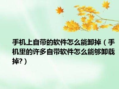 导读相信目前很多小伙伴对于手机里的许多自带软件怎么能够卸载掉?都比较感兴趣,那么小编今天在网上也是收集了一些与手机里的许多自带软件怎么...