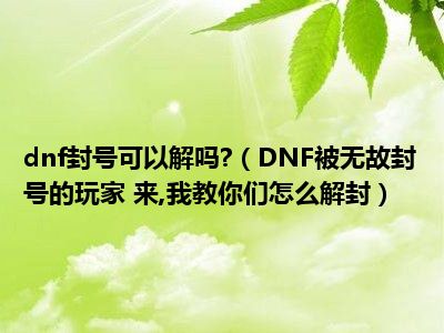 导读 相信目前很多小伙伴对于DNF被无故封号的玩家 来,我教你们怎么解封都比较感兴趣,那么小编今天在网上也是收集了一些与DNF被无故封号的玩家...