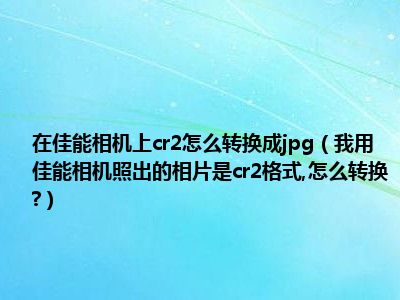 相信目前很多小伙伴对于我用佳能相机照出的相片是cr2格式,怎么转换?都比较感兴趣,那么小编今天在网上也是收集了一些与我用佳能相机照出的相片是cr2格式,怎么转换?相关的信息来分享给大家,希望能够帮助到大家哦。