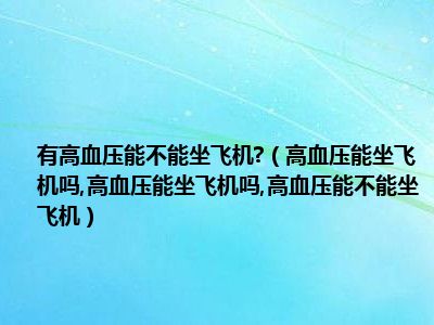 目前大家应该是对高血压能坐飞机吗,高血压能坐飞机吗,高血压能不能坐飞机比较感兴趣的,所以今天小编CC就来为大家整理了一些关于高血压能坐飞机吗,高血压能坐飞机吗,高血压能不能坐飞机方面的相关知识来分享给大家,希望大家会喜欢哦。