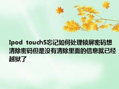 相信目前很多小伙伴对于ipod touch5忘记锁屏密码怎么处理,想要清除密码,但要不清除里面的资料,已越狱都比较感兴趣,那么小编今天在网上也是收集了一些与ipod touch5忘记锁屏密码怎么处理,想要清除密码,但要不清除里面的资料,已越狱相关的信息来分享给大家,希望能够帮助到大家哦。