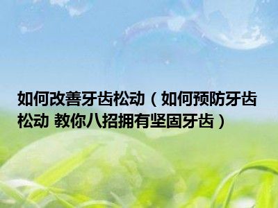 导读 目前大家应该是对如何预防牙齿松动 教你八招拥有坚固牙齿比较感兴趣的,所以今天小编CC就来为大家整理了一些关于如何预防牙齿松动 教你八...