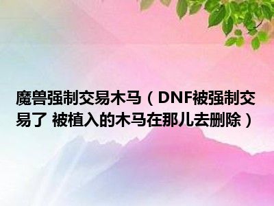 相信目前很多小伙伴对于DNF被强制交易了 被植入的木马在那儿去删除都比较感兴趣,那么小编今天在网上也是收集了一些与DNF被强制交易了 被植入的木马在那儿去删除相关的信息来分享给大家,希望能够帮助到大家哦。