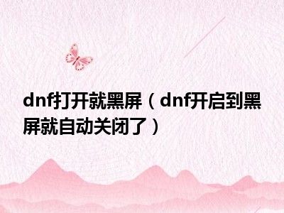 相信目前很多小伙伴对于dnf开启到黑屏就自动关闭了都比较感兴趣,那么小编今天在网上也是收集了一些与dnf开启到黑屏就自动关闭了相关的信息来分享给大家,希望能够帮助到大家哦。