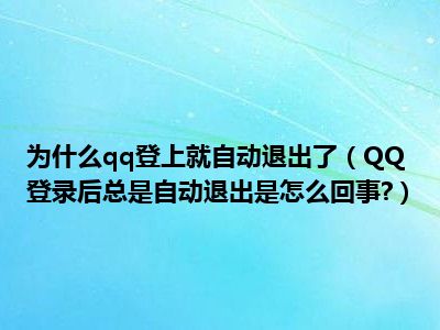 相信目前很多小伙伴对于QQ登录后总是自动退出是怎么回事?都比较感兴趣,那么小编今天在网上也是收集了一些与QQ登录后总是自动退出是怎么回事?相关的信息来分享给大家,希望能够帮助到大家哦。