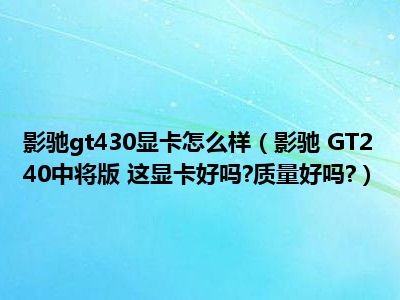 相信目前很多小伙伴对于影驰 GT240中将版 这显卡好吗?质量好吗?都比较感兴趣,那么小编今天在网上也是收集了一些与影驰 GT240中将版 这显卡好吗?质量好吗?相关的信息来分享给大家,希望能够帮助到大家哦。
