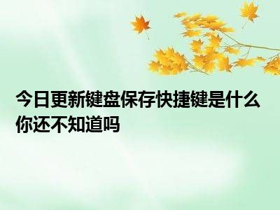 目前上述的内容应该能够为大家解答出大家对于键盘保存快捷键是什么 你还不知道吗的疑惑了,所以如果大家还想要了解更多的知识内容,也可以关注本站其他文章进行了解哦。