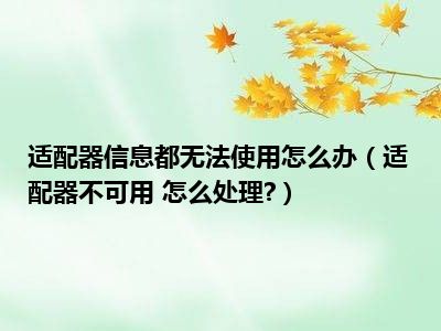 相信目前很多小伙伴对于适配器不可用 怎么处理?都比较感兴趣,那么小编今天在网上也是收集了一些与适配器不可用 怎么处理?相关的信息来分享给大家,希望能够帮助到大家哦。