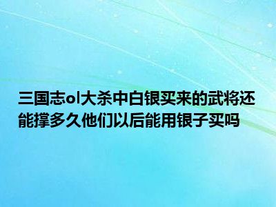 相信目前很多小伙伴对于盛大三国杀ol中银两买的武将能用多久,是不是以后都能用银两买?都比较感兴趣,那么小编今天在网上也是收集了一些与盛大三国杀ol中银两买的武将能用多久,是不是以后都能用银两买?相关的信息来分享给大家,希望能够帮助到大家哦。