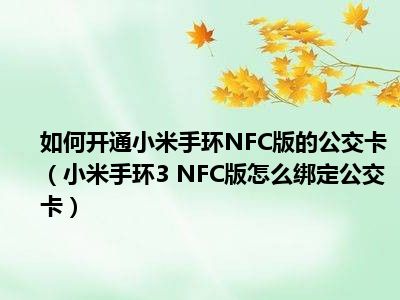 导读 1、绑定公交卡2、将手环与手机连接后,打开小米运动App,进入my-mi band 3 NFC版页面,就可以看到它显示的公交卡入口。3、然后点击