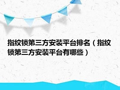 导读 1、指纹锁安装平台2、秀大大3、秀大大拥有30万专业安装人员。全国600个城市,3000个区县,家里都可以安装,还可以预约自己锁定。可以说是一