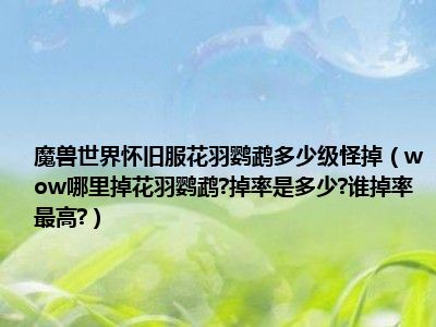 相信目前很多小伙伴对于wow哪里掉花羽鹦鹉?掉率是多少?谁掉率最高?都比较感兴趣,那么小编今天在网上也是收集了一些与wow哪里掉花羽鹦鹉?掉率是多少?谁掉率最高?相关的信息来分享给大家,希望能够帮助到大家哦。