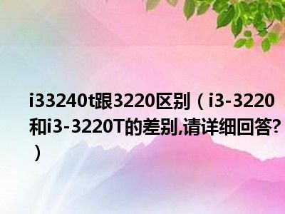 相信目前很多小伙伴对于i3-3220和i3-3220T的差别,请详细回答?都比较感兴趣,那么小编今天在网上也是收集了一些与i3-3220和i3-3220T的差别,请详细回答?相关的信息来分享给大家,希望能够帮助到大家哦。
