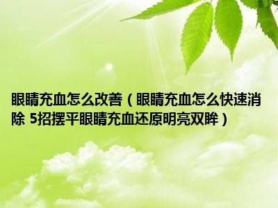 目前大家应该是对眼睛充血怎么快速消除 5招摆平眼睛充血,还原明亮双眸比较感兴趣的,所以今天小编CC就来为大家整理了一些关于眼睛充血怎么快速消除 5招摆平眼睛充血,还原明亮双眸方面的相关知识来分享给大家,希望大家会喜欢哦。